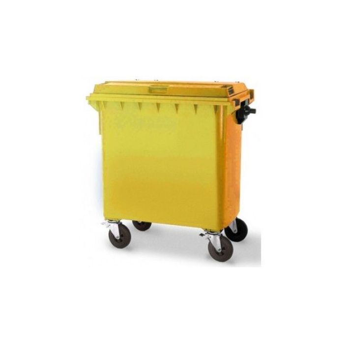 - Afvalcontainer 770 liter, voldoet aan EN 840 met 4 zwenkwielen Ø-200 mm standaard met rem