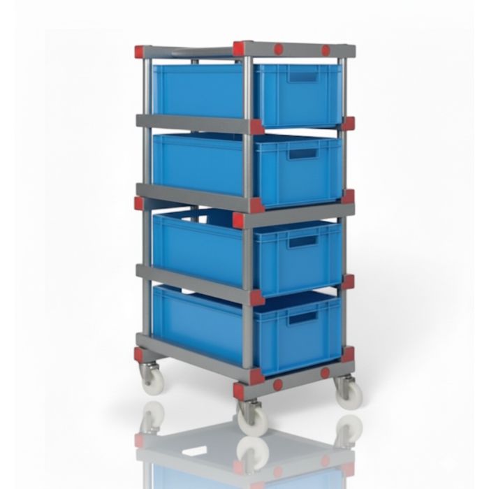 - Inclusief 4 euronorm stapelbakken, 60x40x22cm, inhoud 45 liter, blauw