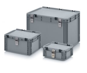 EXACT= OM DEZE REDEN! Bieden wij naast de gangbare basis modellen gemodificeerde producten aan. Zoals het afsluitbare programma kunststof bakken met sleutelslot. Bij uitstek een uniek leveringsprogramma waarbij de kunststof stapelbakken worden voorzien van kunststof scharnieren met easy open sluithendels en sleutelslot. De gemodificeerd stapelbakken blijven onderling goed op elkaar stapelbaar. Ook als deze worden combineren met de basis modellen, zodoende blijft de efficiëntie gewaarborgd. Daarbij zijn de afsluitbare stapelbakken extra versterkt in de hoeken dit verhoogt de constructieve integriteit, stoot-, slagvastheid en stapelbelasting.