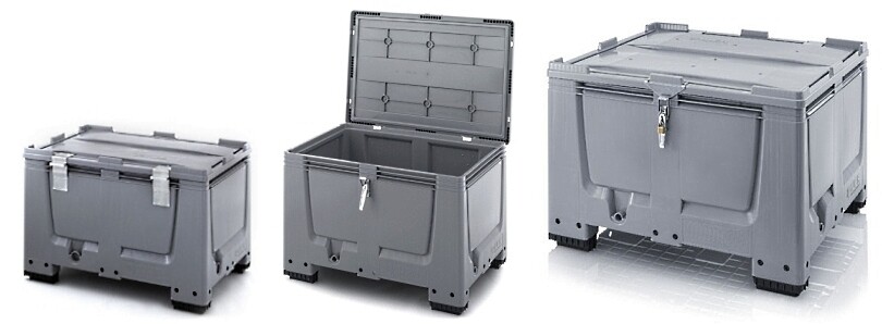 Naast de afsluitbare stapelbakken bieden wij ook de mogelijkheid om grotere volumes veilig af te sluiten. Hierbij maken wij gebruik om onze basis palletboxen te modificeren. Deze boxen worden voorzien van metalen scharnierbeslag en een veer spansluiting waardoor de box kan worden afgesloten met een hangslot. Onze afsluitbare palletboxen bieden dan ook de mogelijkheid om bulk inhoud optimaal te beveiligen. Denk hierbij aan opslag voor buiten of dure apparatuur, kostbare verzamelstukken of grondstoffen opslag welke voor de veiligheid moeten worden afgesloten; de mogelijkheden zijn uiterste divers. Wij zijn in staat om elke palletbox te voorzien van een sluitsysteem, eventueel op poten, sleeplatten of wielen. Kortom onze afsluitbare palletboxen programma een echte aanrader als het gaat om afsluitbare opslag of transport! Heeft u nog vragen of opmerkingen aarzel niet om contact met ons op te nemen klik >> Hier << voor het contactformulier.