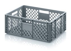 De grote perforatie zorgt voor optimale koelcirculatie tijdens opslag of transport. De grote opengewerkte zijwanden en bodem zorgen voor een maximale luchtcirculatie; belangrijk als er producten zijn die optimaal moeten worden gekoeld of geventileerd. De stapelbak wordt gekenmerkt door zijn grid-achtige honingraatstructuur aan de zijwanden en bodem, zijn licht in gewicht en uitermate gebruiksvriendelijk afgewerkt, waaronder vier open handgrepen voor optimaal draagcomfort. Compatibel met andere Euroformaat stapelbakken, pallets, rolcontainers en transport dolly’s. Geschikt voor dagelijks gebruik in: industrie, voedselindustrie en commerciële sector.