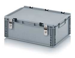 Bakken met een vaste scharnierdeksel en twee sluithendels is de oplossing op producten optimaal te beschermen tegen invloeden van buitenaf zoals; stof, vuil, water of ongedierte. De gesloten stapelbakken zijn leverbaar in diverse uitvoeringen en afmetingen: 30x20 cm, 40x30 cm, 60x40 cm en 80x60 cm en zijn uitermate stabiel op elkaar stapelbaar in gesloten staat. Het kunststof materiaal is levensmiddelen geschikt en maakt het mogelijk om de bakken probleemloos voor voedsel opslag te gebruiken. Compatibel met andere Euroformaat stapelbakken, pallets, rolcontainers en transport dolly’s. Geschikt voor dagelijks gebruik in: industrie, voedselindustrie en commerciële sector. Kortom een uiterst praktisch en robuuste oplossing om producten te verpakken en vervoeren.