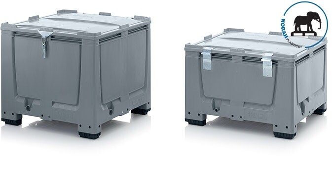 Palletboxen met afsluitbaar slotsysteem en scharnierend deksel, ideaal voor diefstal preventie en ongeoorloofd open van waardevolle producten. Een robuuste ontwerp gemaakt voor intensief dagelijks gebruik.