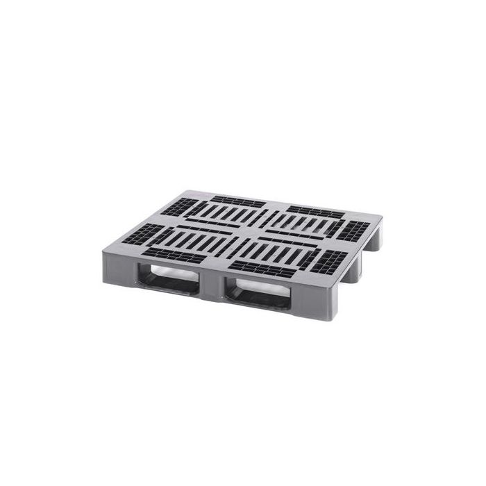 | Extra informatie | Medium duty blok pallet van kunststof, voorzien van geperforeerd bovendek, onderzijde 3 open sleeplatten overdwars, in rijdbaar 4-zijdig |