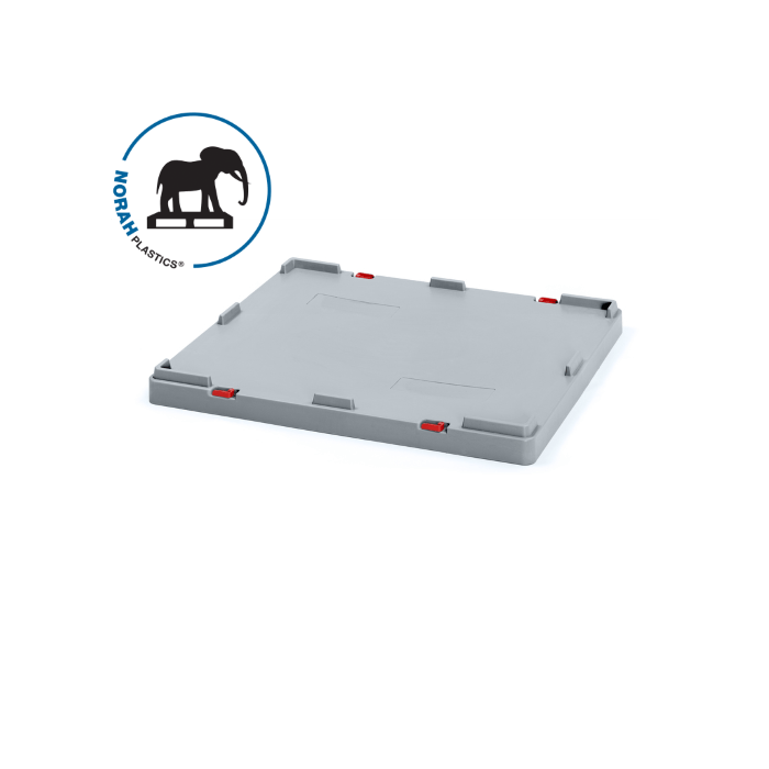 Deksel met sluithendels voor het hygiënisch afsluiten van de vouwbare Bag In Box container 1000 liter. De deksels zijn bestand tegen de meest agressieve chemicaliën (zuren en logen) en worden gemaakt van kunststof grondstof materiaal ABS. Onze palletboxen ideaal voor voedselverwerkende industrie, afvalbeheer en recycling. Een robuuste ontwerp gemaakt voor intensief dagelijks gebruik.