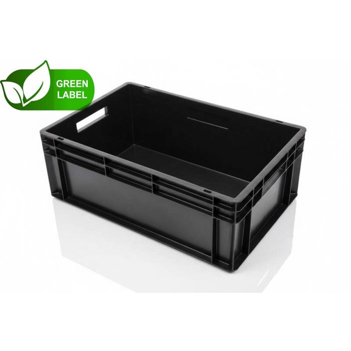 Stapelbare euronorm bak 60x40x22cm, inhoud 45 liter, zwart, RE-PP.