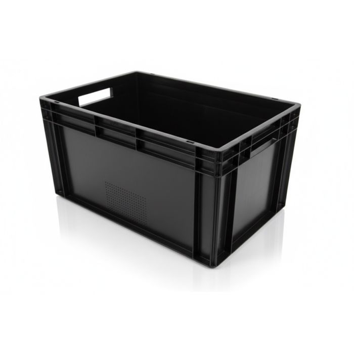 Stapelbare euronorm bak 60x40x32cm, inhoud 66 liter, zwart, RE-PP.