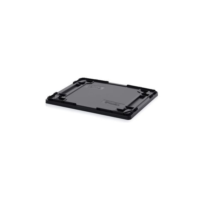 ESD deksel voor het afsluiten van stapelbak afmeting 80x60cm. De ESD bakken blijven onderling stabiel stapelbaar in combinatie met de deksel.