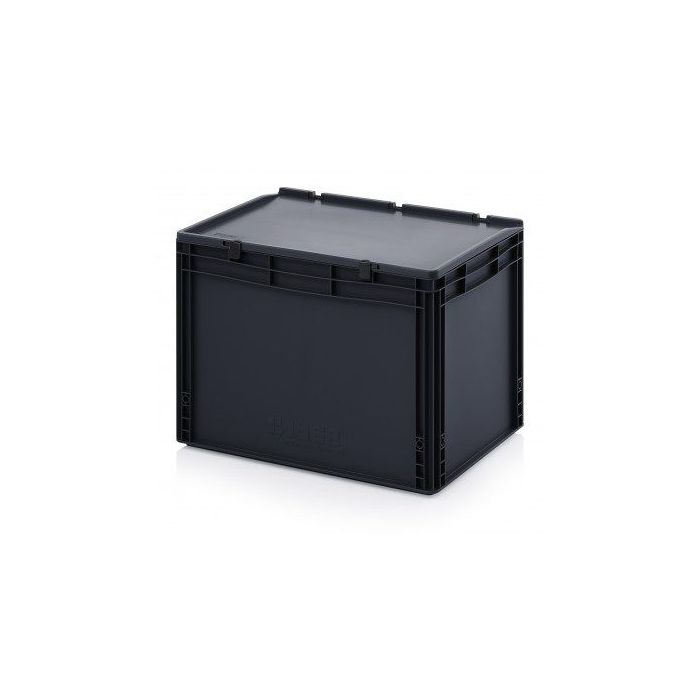 - Euro-ESD stapelbak met scharnierdeksel, ideaal voor transport en opslag van elektronich gevoelige producten