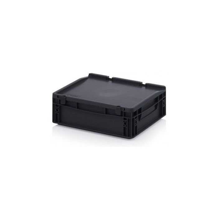 - Euro-ESD stapelbak met scharnierdeksel, ideaal voor transport en opslag van elektronich gevoelige producten