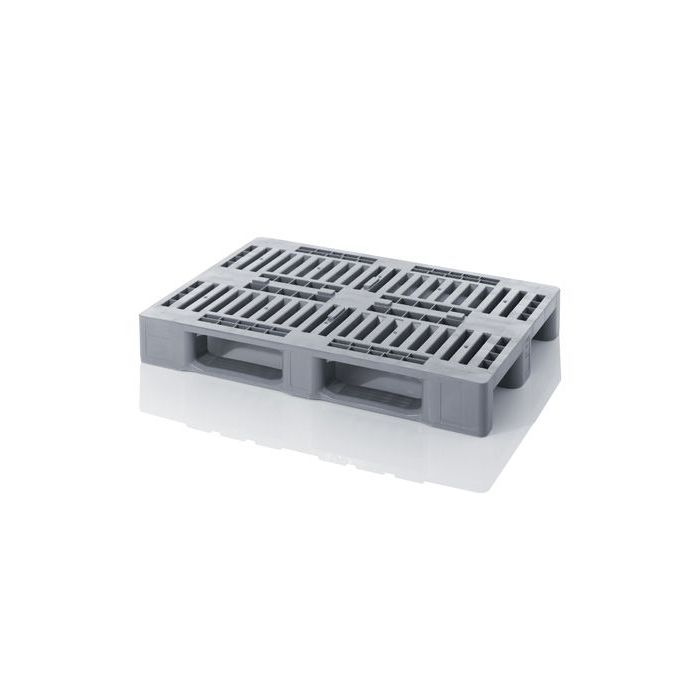| Extra informatie | H1 pallet met geperforeerd sleuven bovendek, zonder randen rondom, voorzien van centreernokken op het palletdek; onderzijde 3 gesloten massieve sleeplatten en palletpoten, in rijbaar 4-zijdig |