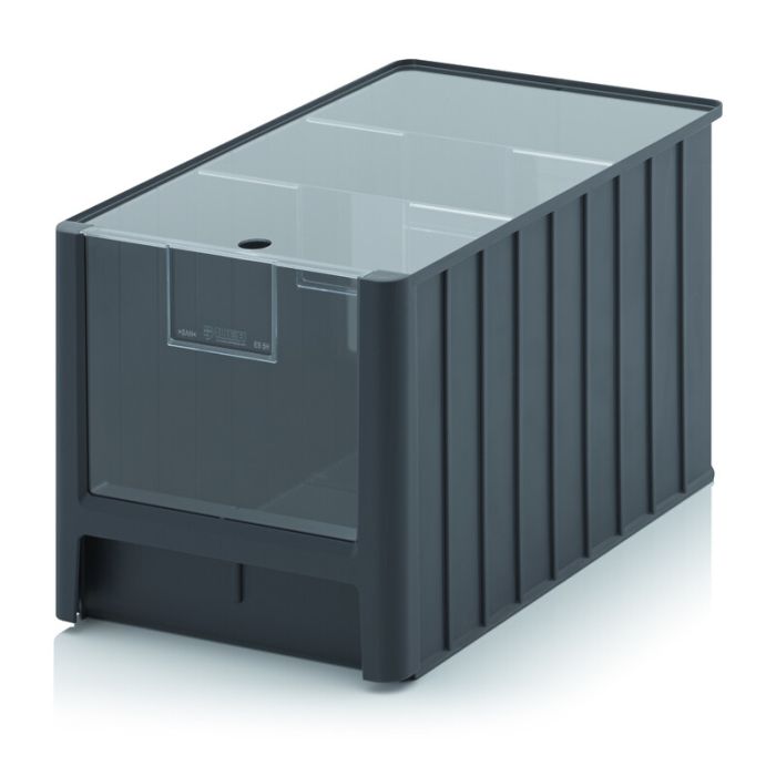 Magazijnbak 50x31x30cm, inhoud 38,2 liter met insteekvenster, deksel en 2 verdeelschotten