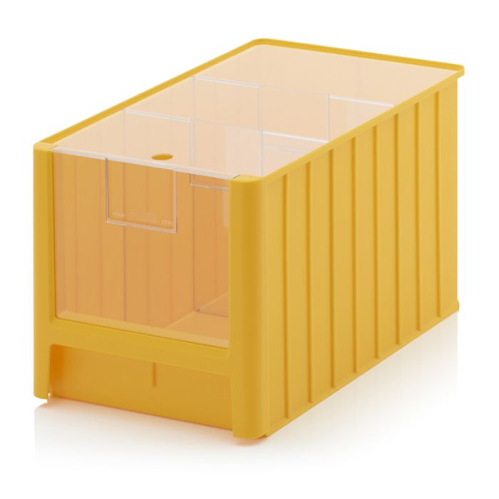 Magazijnbak 50x31x30cm, inhoud 38,2 liter met insteekvenster, deksel en 2 verdeelschotten