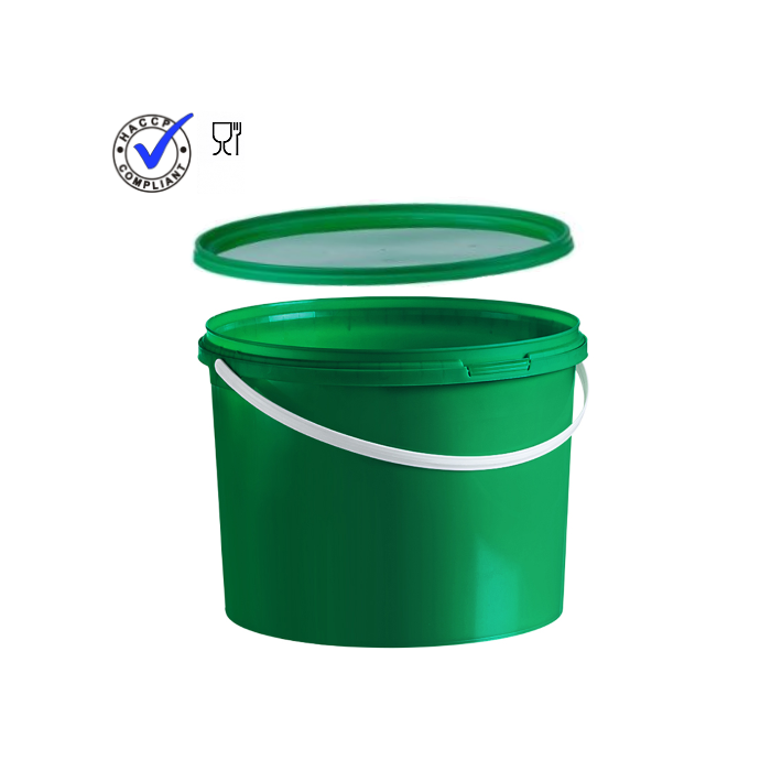 Ronde verpakkingsemmer met deksel en draaghengsel van Norah Plastics. De beste keus voor het verpakken van uiteenlopende producten en geschikt voor opslag, transport en productie van vaste- en vloeibare stoffen. Onze emmers worden volledig geproduceerd van polypropyleen hierdoor vrij van metalen en hebben in de meeste uitvoeringen een vacuüm afsluitbare deksel met draaghengsel zijn diepvriesbestendig, geur en smaakloos. Geschikt voor Food en Non-Food toepassingen en worden in diverse sectoren dagelijks ingezet als een meermalige verpakkings of productie emmer. Door de gladde ronden binnen-, en buitenwanden zijn de emmers eenvoudig en hygiënisch te reinigen. Leeg kunnen de emmers in elkaar worden gestapeld om opslag of transport te besparen. Onze emmers voldoen aan de kwaliteitssystemen die hedendaags worden gesteld zoals; HACCP, BRC en NSF reglementen. Individuele opdruk zoals full-color IML design, bedrijfslogo bedrukking op aanvraag mogelijk – Geschikt voor voedingssector, farmaceutische industrie, handel, retail, commerciële sectoren, horeca en zorginstellingen