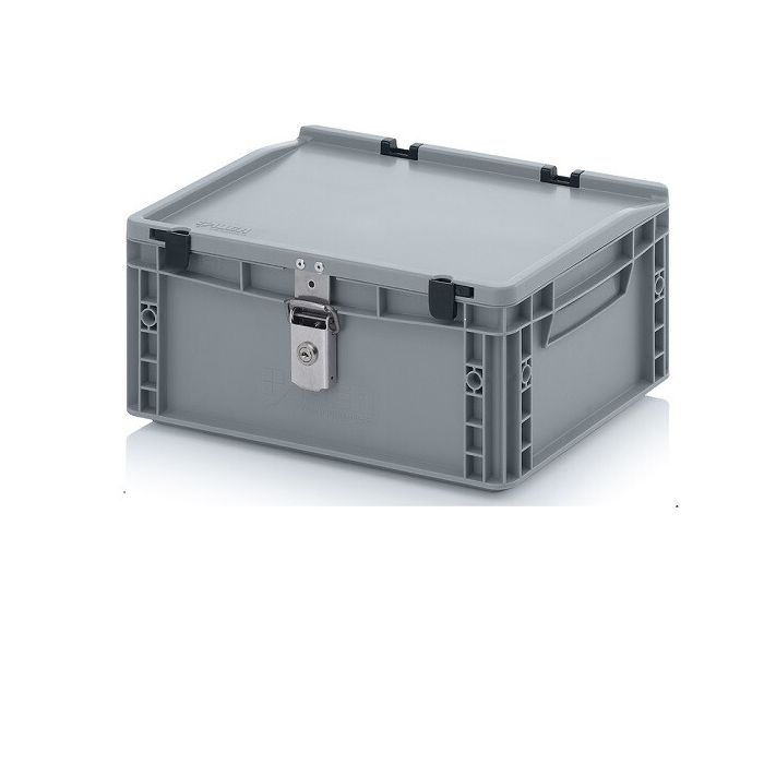 - Euro-stapelbak met scharnierdeksel en sleutelslot tegen ongeoorloofd openen