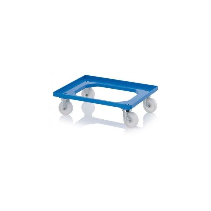 - Kunststof blauwe dollie voor opslag en het vervoeren van alle type Euro-formaat stapelbakken met bodemaat: 60 x 40 cm