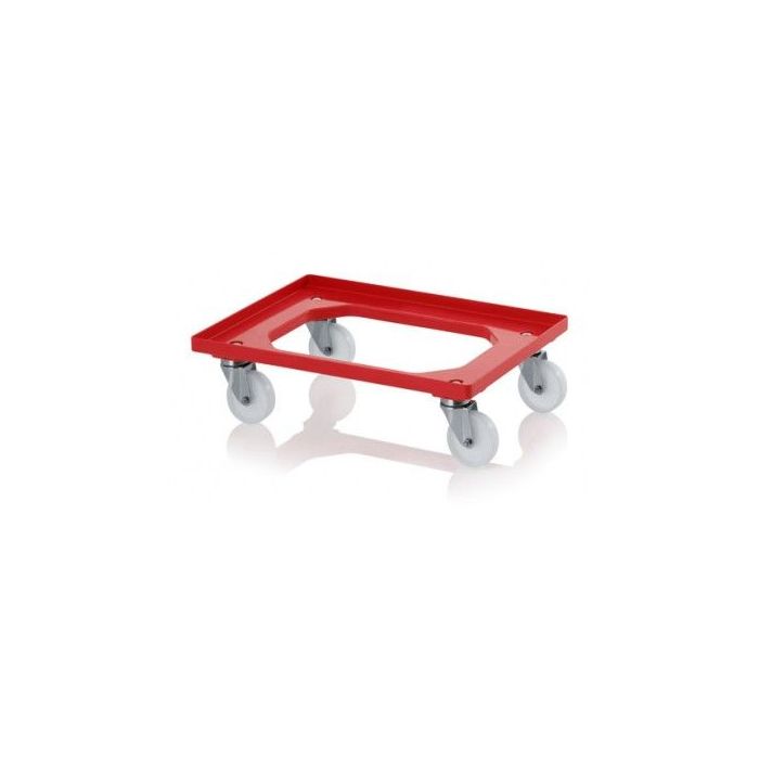- Roestvrijstalen rode dollie met een kunststof frame; voor opslag en het vervoeren van alle type Euro-formaat stapelbakken met bodemaat: 60 x 40 cm