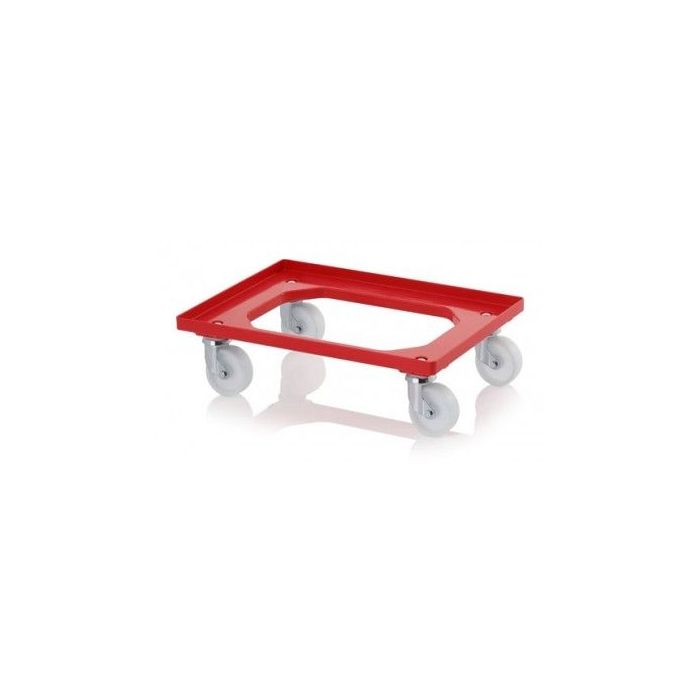- Kunststof rode dollie voor opslag en het vervoeren van alle type Euro-formaat stapelbakken met bodemaat: 60 x 40 cm