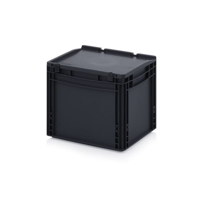 - Euro-ESD stapelbak met scharnierdeksel, ideaal voor transport en opslag van elektronich gevoelige producten