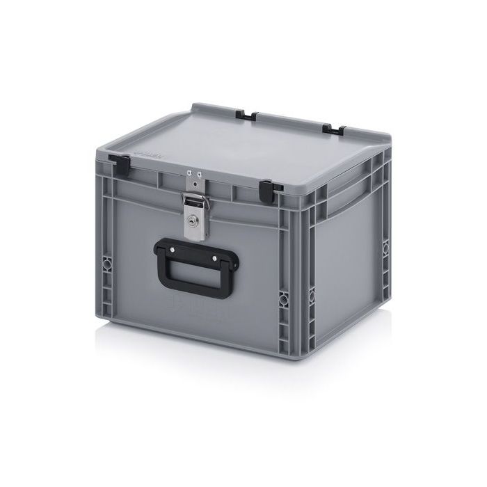 - Euronorm koffer met scharnierdeksel-, sluithendels, koffergreep op 1 lange kant en sleutelslot