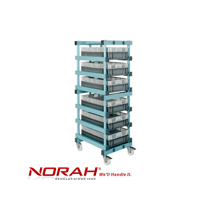 Onze praktische kunststof bakkenwagens en regaalwagens: „voor het overzichtelijk opslaan van alle type kunststof bakken, schalen, dien-, bladen en korven. De bakkenwagens zijn standaard leverbaar als Euronorm en gastronoom modellen. Levering op maat voor andere formaten is ook mogelijk.