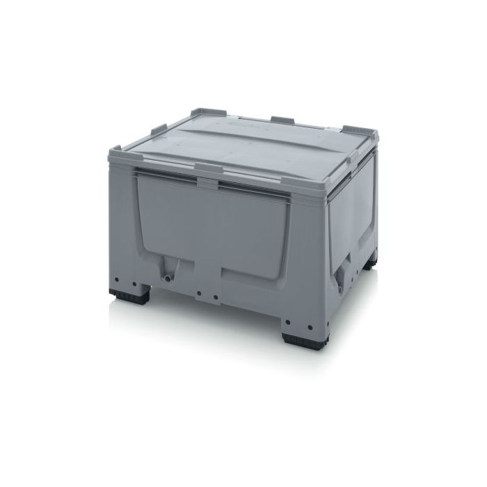 - Industrie palletbox met vaste scharnierdeksel op 4 poten, de beste keus om producten optimaal te beschermen tijdens opslag en transport