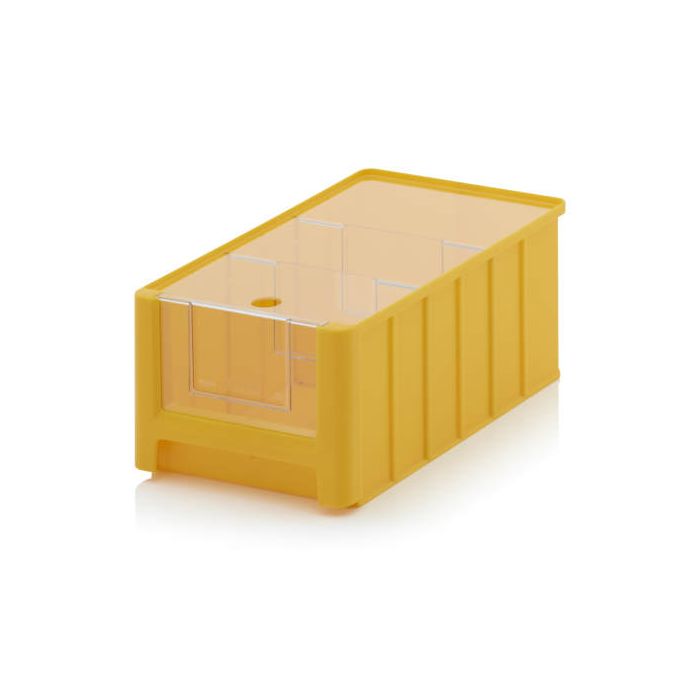 Magazijnbakken met een transparante insteekvenster, stofdeksel en 2 verdeelschotten zijn duurzaam, gebruiksvriendelijk en hebben een lange levensduur. Een praktisch en overzichtelijk oplossing om producten optimaal te beschermen tijdens opslag. De magazijnbakken zijn leverbaar in meerdere afmetingen en verschillende kleuren voor kleurcodering binnen uw magazijn of werkplaats. Stabiel op elkaar stapelbaar en zijn modulair opgebouwd zodat ze onderling met elkaar kunnen worden gecombineerd als indeling.
