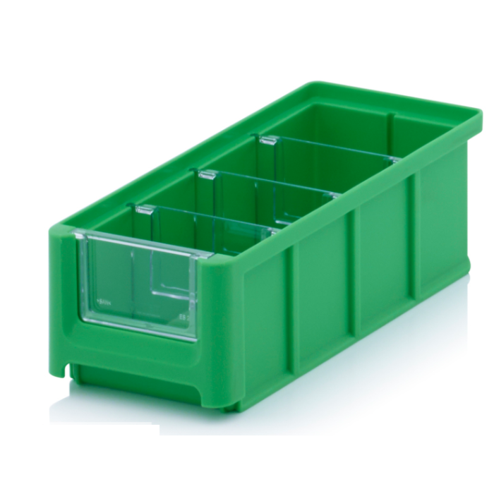 Magazijnbak 22 x 10,2 x 7,5 cm, inhoud 1,08 liter met 3 dwarsverdeelschotten en insteekzichvenster