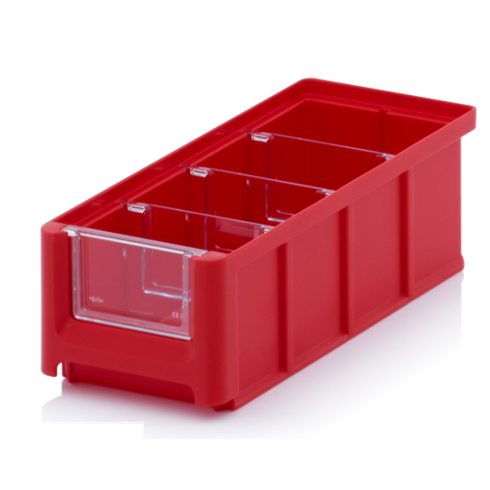 Magazijnbak 22x10,2x7,5 cm, inhoud 1,08 liter met 3 dwarsverdeelschotten en insteekzichvenster