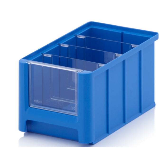 Magazijnbak 22,5x15x12,5cm, inhoud 3,17 liter met 3 dwarsverdeelschotten en insteekzichvenster
