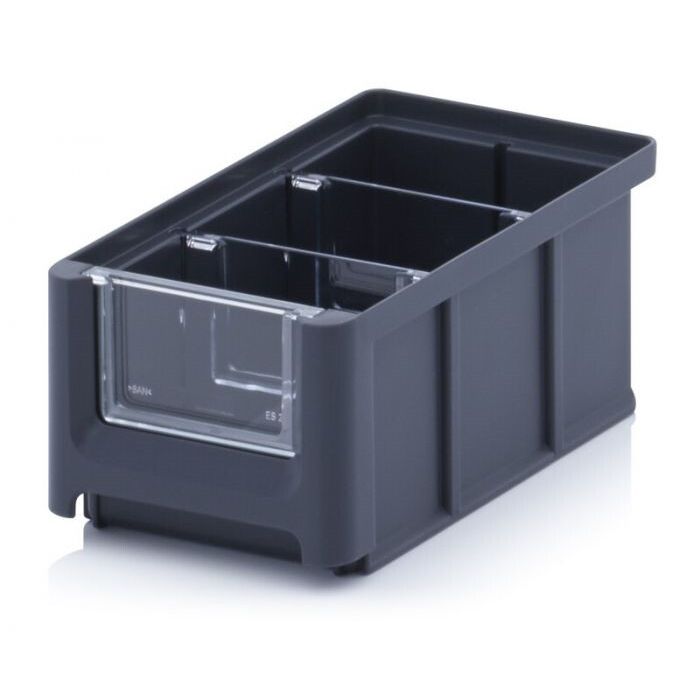 Magazijnbak 16x10,2x7,5cm, inhoud 0,77 liter met 2 dwarsverdeelschotten en insteekzichvenster