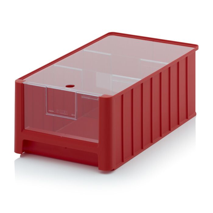 Magazijnbakken met een transparante insteekvenster, stofdeksel en 2 verdeelschotten zijn duurzaam, gebruiksvriendelijk en hebben een lange levensduur. Een praktisch en overzichtelijk oplossing om producten optimaal te beschermen tijdens opslag. De magazijnbakken zijn leverbaar in meerdere afmetingen en verschillende kleuren voor kleurcodering binnen uw magazijn of werkplaats. Stabiel op elkaar stapelbaar en zijn modulair opgebouwd zodat ze onderling met elkaar kunnen worden gecombineerd als indeling.
