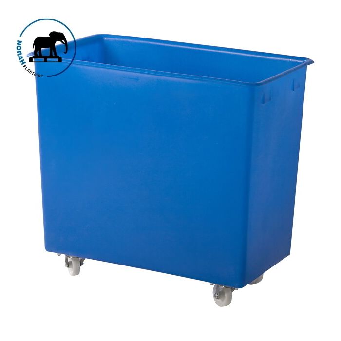 Mobiele opslagbak van robuuste kunststof voor universeel gebruik bij transport, opslag of productieprocessen. De transportwagens worden geproduceerd van eersteklas grondstof materiaal HDPE en worden uit één stuk gefabriceerd. Een stoot-, slagvaste constructie in een naad-, kierloos ontwerp met zowel buiten-, als binnenwerks rond en volledig gladde wanden, hierdoor zijn de bakken op wielen snel en grondig te reinigingen en uitermate gebruiksvriendelijk. Individuele opdruk zoals naam en logo zijn op aanvraag mogelijk – Geschikt voor poedervormig materialen, granulaat, onderdelen, wasgoed, grondstoffen, verpakkingen, levensmiddelen, afval en vloeistoffen; zoals Industrie, Handel, Retail, Commerciële sectoren, Horeca, Scholen, Gemeentes en Zorginstellingen.