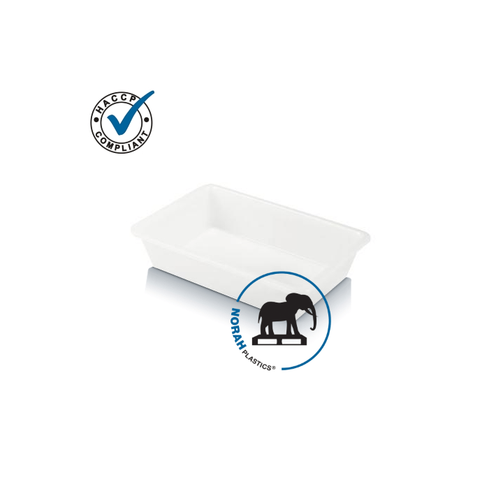 Witte nestbakken voor opslag en productie in industriële kwaliteit van NORAH PLASTICS, ontworpen voor dagelijks gebruik. Een uiterste duurzame constuctie zonder randen, naden, kieren of openingen waar productrestanten achter kunnen blijven liggen. Gemaakt van levensmiddelengeschikt HDPE; hierdoor zijn de bakken stoot-, slagvast, diepvriesbestendig, geur-, smaakloos en geschikt voor direct contact met levensmiddelen, medicamenten, zuren of logen. De bakken zijn snel en gebruiksvriendelijk te reinigingen of ontsmetten en universeel inzetbaar. Voldoen aan strenge kwaliteitssystemen die hedendaags worden gesteld zoals; HACCP, BRC en NF reglementen. Op aanvraag na opdracht kan een attest verklaring van overeen stemming volgens de norm EU1935/2004 & verordening EU10/2011 van deze bakken serie worden afgegeven.