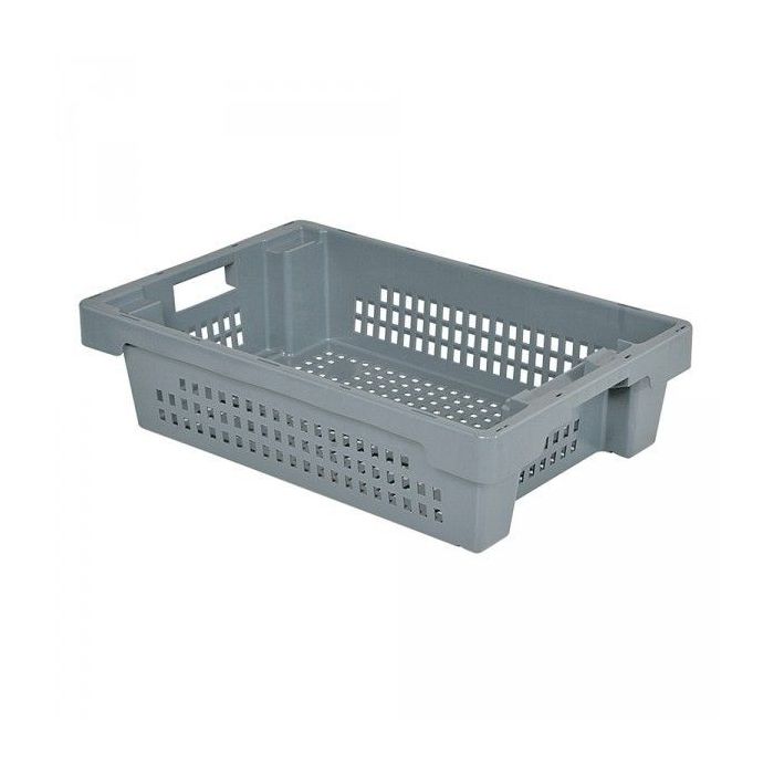 Nestbare stapelbakken met een geperforeerde bodem en zijwanden van NORAH Plastics zijn zowel op elkaar stapelbaar als in elkaar nestbaar door de bak in één beweging een slagkwart naar links of rechts te draaien. Mede hierdoor uitermate geschikt op alle gebieden waar ruimtebesparing een belangrijke rol speelt. Door lege kunststof bakken in elkaar te nesten ofwel ‘schuiven’ kan er maximaal worden bespaart aan opslag maar ook bij lege retourstransporten kunnen er grotere volumes mee terug worden meegenomen. Als de bakken zijn vol geladen zijn ze stabiel op elkaar stapelbaar en afsluitbaar met een deksel. De ergonomische handgrepen zorgen voor een aangename handeling bij draaien, dragen en stapelen. De kunststof stapel-nestbare bakken worden gemaakt van hoogwaardige kunststof polyethyleen (HDPE) wat een lange levensduur garandeert. Zijn stoot-, en slagvast, diepvriesbestendig, geur en-, smaakloos. Temperatuurbestendigheid van -30°C tot +70°C en geschikt voor directe contact met levensmiddelen. De bakken zijn reinigingsvriendelijke ontworpen door de gladde binnen-, en buitenwanden en met een naadloos vlakke gladde bodem – Geschikt voor industrie, handel, retail, commerciële sectoren, horeca, scholen, gemeentes en zorginstellingen.