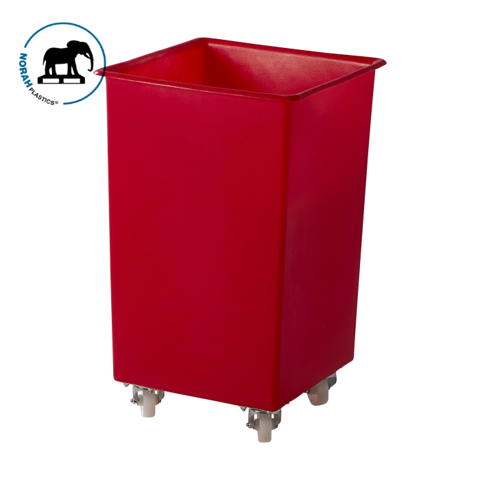 Transportwagen 120 liter van NORAH Plastics gemaakt van duurzaam kunststof materiaal HDPE. Uitermate geschikt voor veelzijdig gebruik bij opslag, transport of productieprocessen. De transportwagen een stoot-, slagvaste constructie in een naad-, kierloos ontwerp met zowel buiten-, als binnenwerks rond en volledig gladde wanden voor makkelijke schoonmaken. Individuele opdruk zoals naam en logo zijn op aanvraag mogelijk – Geschikt voor poedervormig materialen, granulaat, onderdelen, wasgoed, grondstoffen, verpakkingen, levensmiddelen, afval en vloeistoffen; zoals Industrie, Handel, Retail, Commerciële sectoren, Horeca, Scholen, Gemeentes en zorginstellingen.