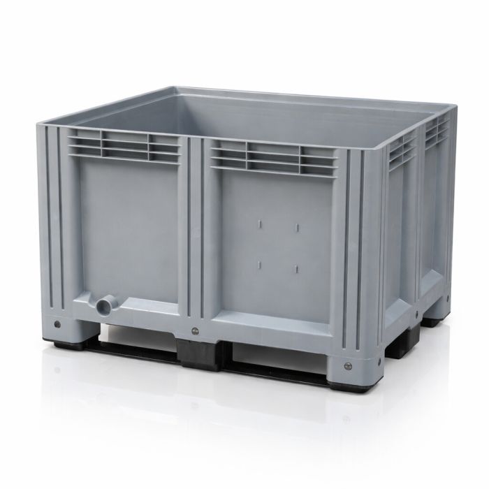 - Stevige grijze palletbox 120x100x78 cm, 610 liter met 3 sleeplatten