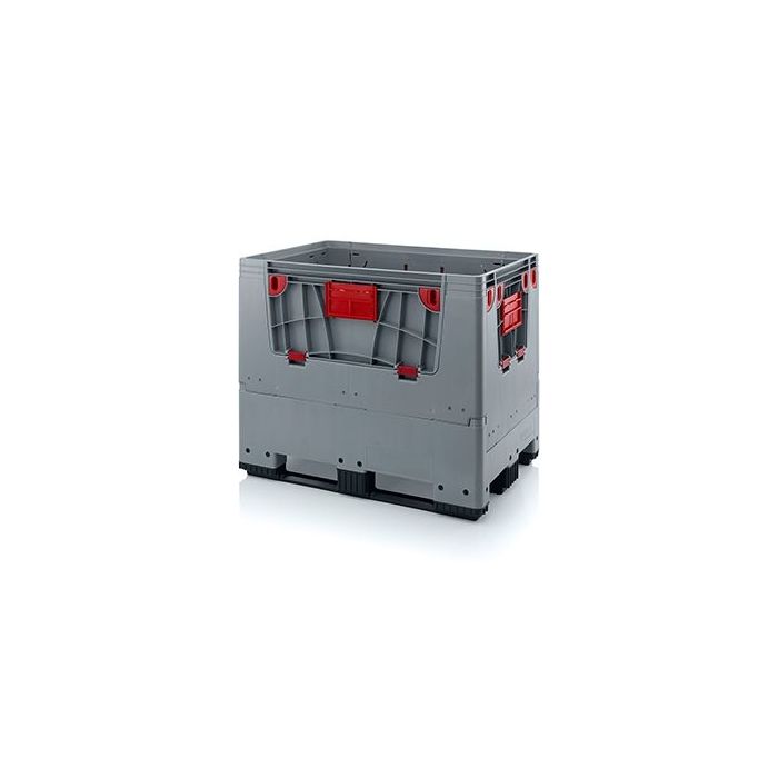 - Vouwbare Euro-palletbox op 3 sledes met 4 scharnierende klapbare laadkleppen biedt direct toegang tot de onderste box