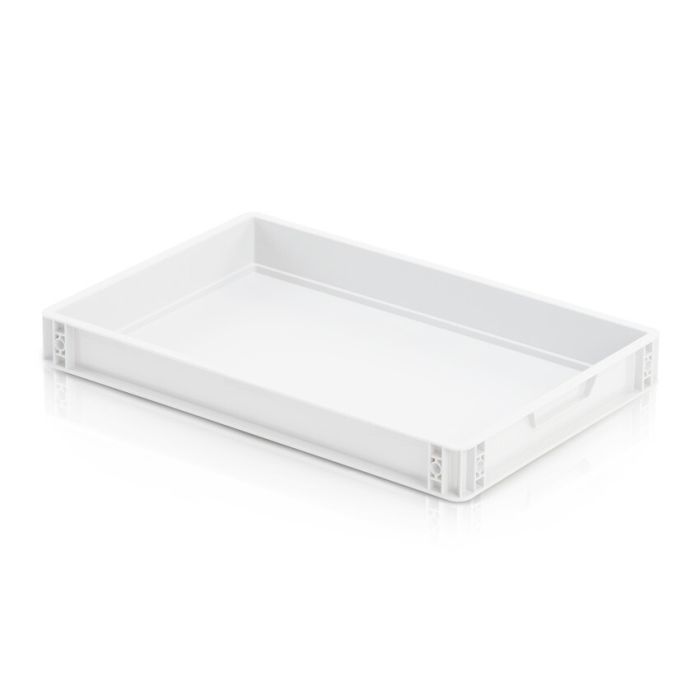Kunststof stapelbak geschikt als deegbak of voor pizzabollen, speciaal ontworpen voor het gisten van deegproducten. Robuust, duurzaam voor industrieel, commercieel en opslaggebruik. Een stoot en slagvaste uitvoering. Geschikt voor de productie, opslag en verwerking van levensmiddelen en geneesmiddelen. Bestand tegen de meeste chemicaliën, oliën en vetten. Onze natuurlijke witte plastic containers zijn verkrijgbaar in verschillende uitvoeringen en maten, zijn uiterst stabiel en kunnen op elkaar worden gestapeld. De plastic containers zijn fysiologisch comfortabel en 100% recycleerbaar, dus goed voor het milieu. Alle Euro-standaardcontainers komen overeen met de Euro-palletafmetingen en besparen zo op transportkosten en opslagvolume. Op verzoek realiseren wij graag oplossingen op maat.