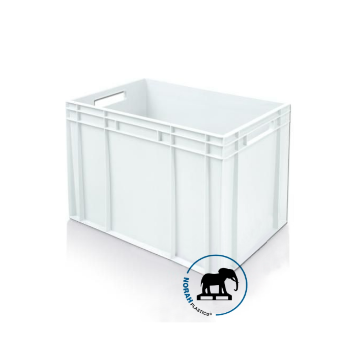 Kunststof stapelbakken van hoogwaardig polyethyleen HDPE van NORAH Plastics, een schok- en slagvast kunststofmateriaal. Zeer geschikt voor de productie, opslag en verwerking van levensmiddelen en geneesmiddelen. Bestand tegen de meeste chemicaliën, oliën en vetten. Onze natuurlijke witte plastic containers zijn verkrijgbaar in verschillende uitvoeringen en maten, zijn uiterst stabiel en kunnen op elkaar worden gestapeld. De plastic containers zijn fysiologisch comfortabel en 100% recycleerbaar, dus goed voor het milieu. Alle Euro-standaard stapelbakken komen overeen met de Euro-palletafmetingen en besparen zo op transportkosten en opslagvolume. Op verzoek realiseren wij graag oplossingen op maat.