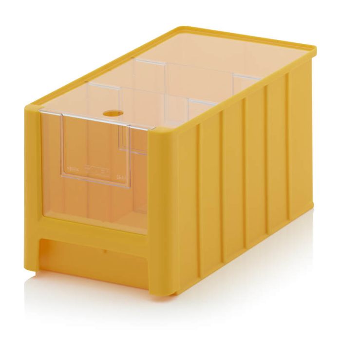 Magazijnbakken met een transparante insteekvenster, stofdeksel en 2 verdeelschotten zijn duurzaam, gebruiksvriendelijk en hebben een lange levensduur. Een praktisch en overzichtelijk oplossing om producten optimaal te beschermen tijdens opslag. De magazijnbakken zijn leverbaar in meerdere afmetingen en verschillende kleuren voor kleurcodering binnen uw magazijn of werkplaats. Stabiel op elkaar stapelbaar en zijn modulair opgebouwd zodat ze onderling met elkaar kunnen worden gecombineerd als indeling.