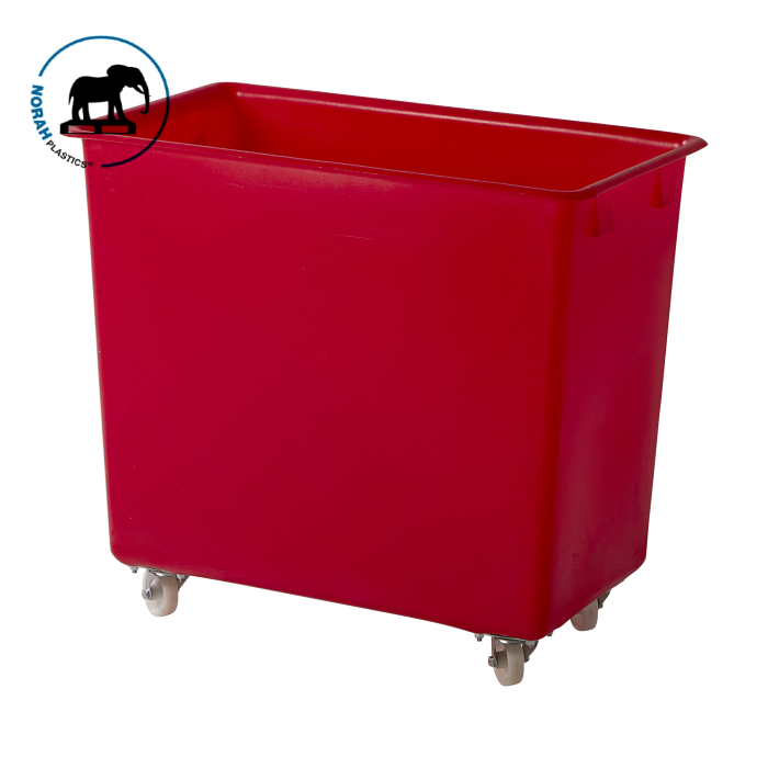 Robuuste kunststof transportwagens van NORAH Plastics voor universeel gebruik bij transport, opslag of productieprocessen. De verrijdbare bakken worden geproduceerd van eersteklas grondstof materiaal HDPE en worden uit één stuk gefabriceerd. Een stoot-, slagvaste constructie in een naad-, kierloos ontwerp met zowel buiten-, als binnenwerks rond en volledig gladde wanden, hierdoor zijn de bakken op wielen snel en grondig te reinigingen en uitermate gebruiksvriendelijk. Individuele opdruk zoals naam en logo zijn op aanvraag mogelijk – Geschikt voor poedervormig materialen, granulaat, onderdelen, wasgoed, grondstoffen, verpakkingen, levensmiddelen, afval en vloeistoffen; zoals Industrie, Handel, Retail, Commerciële sectoren, Horeca, Scholen, Gemeentes en Zorginstellingen.