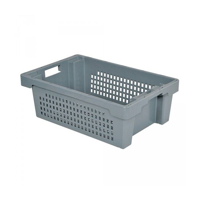 Nestbare stapelbakken met een geperforeerde bodem en zijwanden van NORAH Plastics zijn zowel op elkaar stapelbaar als in elkaar nestbaar door de bak in één beweging een slagkwart naar links of rechts te draaien. Mede hierdoor uitermate geschikt op alle gebieden waar ruimtebesparing een belangrijke rol speelt. Door lege kunststof bakken in elkaar te nesten ofwel ‘schuiven’ kan er maximaal worden bespaart aan opslag maar ook bij lege retourstransporten kunnen er grotere volumes mee terug worden meegenomen. Als de bakken zijn vol geladen zijn ze stabiel op elkaar stapelbaar en afsluitbaar met een deksel. De ergonomische handgrepen zorgen voor een aangename handeling bij draaien, dragen en stapelen. De kunststof stapel-nestbare bakken worden gemaakt van hoogwaardige kunststof polyethyleen (HDPE) wat een lange levensduur garandeert. Zijn stoot-, en slagvast, diepvriesbestendig, geur en-, smaakloos. Temperatuurbestendigheid van -30°C tot +60°C en geschikt voor directe contact met levensmiddelen. De bakken zijn reinigingsvriendelijke ontworpen door de gladde binnen-, en buitenwanden en met een naadloos vlakke gladde bodem – Geschikt voor industrie, handel, retail, commerciële sectoren, horeca, scholen, gemeentes en zorginstellingen