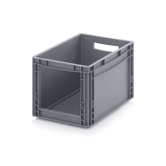Magazijnbak in Euro-formaat met grote grijpopening voor overzichtelijk opslag en snel toegang tot verschillende producten ook tot de onderste bak. Uitermate geschikt voor order picking van grote en kleine onderdelen. Op deze manier heeft u producten, gereedschappen, textiel of kleine onderdelen altijd uitstekend onder controle! De bakken kenmerken zich door een hoge draagvermogen en zware stapelbare belasting zijn uiterst duurzaam en worden geproduceerd van levensmiddelengeschikt polypropyleen wat een lange levensduur garandeert. Leverbaar in diverse uitvoeringen en afmetingen en zijn stabiel op elkaar stapelbaar, compatibel met andere Euro-formaat stapelbakken, pallets, rolcontainers en transport dollies. Individuele opdruk zoals naam en logo zijn op aanvraag mogelijk – Geschikt voor industrie, handel, retail, commerciële sectoren, horeca, scholen, gemeentes en zorginstellingen.