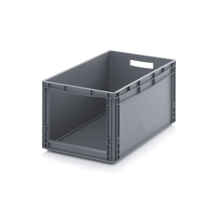Magazijnbak in Euro-formaat met grote grijpopening voor overzichtelijk opslag en snel toegang tot verschillende producten ook tot de onderste bak. Uitermate geschikt voor order picking van grote en kleine onderdelen. Op deze manier heeft u producten, gereedschappen, textiel of kleine onderdelen altijd uitstekend onder controle! De bakken kenmerken zich door een hoge draagvermogen en zware stapelbare belasting zijn uiterst duurzaam en worden geproduceerd van levensmiddelengeschikt polypropyleen wat een lange levensduur garandeert. Leverbaar in diverse uitvoeringen en afmetingen en zijn stabiel op elkaar stapelbaar, compatibel met andere Euro-formaat stapelbakken, pallets, rolcontainers en transport dollies. Individuele opdruk zoals naam en logo zijn op aanvraag mogelijk – Geschikt voor industrie, handel, retail, commerciële sectoren, horeca, scholen, gemeentes en zorginstellingen.