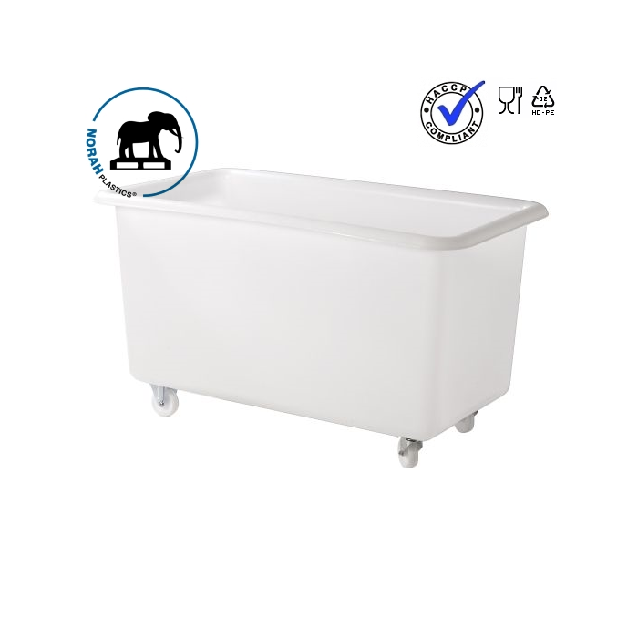 Food line transportwagen 450 liter een hygiënisch en gebruiksvriendelijk ontwerp van NORAH Plastics. De beste keus als het gaat om verwerking, bereiding, productie, opslag of transport van levensmiddelen en pharmaproducten. De wanden en de bodem zijn geheel gesloten en bijzonder glad, zonder externe ribstructuren uitgevoerd; hierdoor zijn de transportwagens snel, grondig te reinigingen of ontsmetten, diepvriesbestendig, geur, smaakloos en geschikt voor contact met levensmiddelen. Door toepassing van hoogwaardig MDPE zijn de wagens bijzonder slag- en stootvast. De wagens zijn bijzonder reinigingsvriendelijk en worden hoofdzakelijk ingezet wanneer een goede hygiëne van belang is. Individuele opdruk zoals naam en logo zijn op aanvraag mogelijk. Onze Food Line transportwagens voldoen aan kwaliteitssystemen die hedendaags worden gesteld zoals – HACCP, BRC en NSF reglementen.