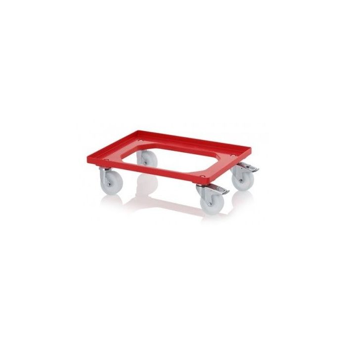 - Kunststof rode dollie voor opslag en het vervoeren van alle type Euro-formaat stapelbakken met bodemaat: 60 x 40 cm