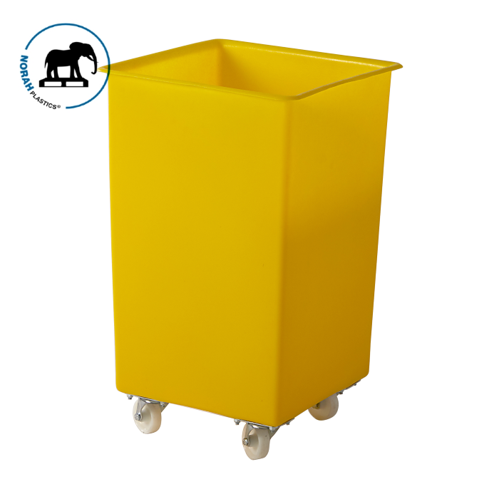 Transportwagen 120 liter van NORAH Plastics gemaakt van duurzaam kunststof materiaal HDPE. Uitermate geschikt voor veelzijdig gebruik bij opslag, transport of productieprocessen. De transportwagen een stoot-, slagvaste constructie in een naad-, kierloos ontwerp met zowel buiten-, als binnenwerks rond en volledig gladde wanden voor makkelijke schoonmaken. Individuele opdruk zoals naam en logo zijn op aanvraag mogelijk – Geschikt voor poedervormig materialen, granulaat, onderdelen, wasgoed, grondstoffen, verpakkingen, levensmiddelen, afval en vloeistoffen; zoals Industrie, Handel, Retail, Commerciële sectoren, Horeca, Scholen, Gemeentes en zorginstellingen.
