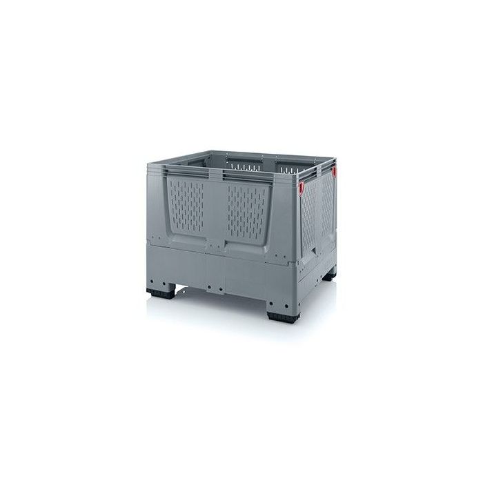 Vouwbare Industrie palletbox met 4 inklapbare geperforeerde wanden en bodem op 4 poten voor optimale koelcirculatie en ruimtebesparing bij opslag en retourtransport van lege palletboxen in opgevouwen staat. De plooibare palletboxen van NORAH Plastics creëren door hun gereduceerd volume in dicht geklapte toestand een aanzienlijk opslag, heen-en-weer transport voordeel. Alle vier vouwwanden zijn snel en eenvoudig inklapbaar. De opvouwbare palletboxen zijn perfecte op elkaar stapelbaar zowel in opgevouwen als opengeklapt toestand en biedt een grote stapelstabiliteit aan. Gemakkelijk schoon te maken door gladde wanden aan de binnenkant. In rijdbaar aan 4 zijden met handpallettruck of heftruck. Een no-nonsense design, extreem sterk ook op de scharnieren. Bekend voor hun grote volume en economische opslagcapaciteit.