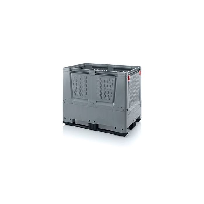 | Extra informatie | Geperforeerde vouwbare palletbox op 3 sledes met een hoge druk-, stoot- en slagvastheid, met vier gladde rechte inklapbare vouwwanden, stapelbelasting statisch: Max. 1500 kg (2 op 1) |